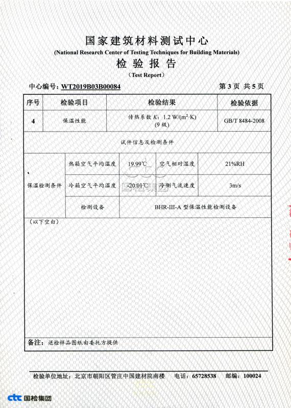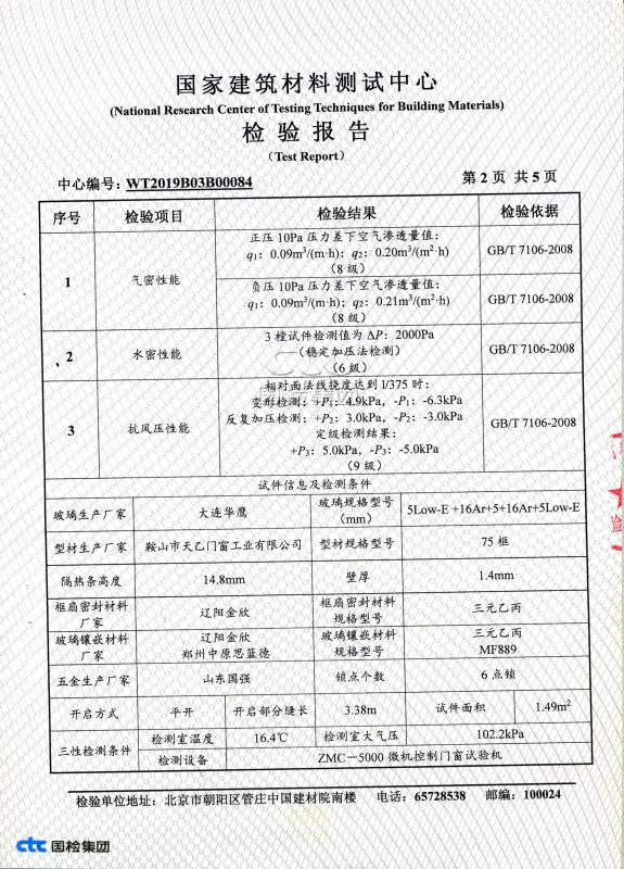 天乙門(mén)窗合成木包鋁窗國(guó)家建筑材料測(cè)試中心檢測(cè)報(bào)告
